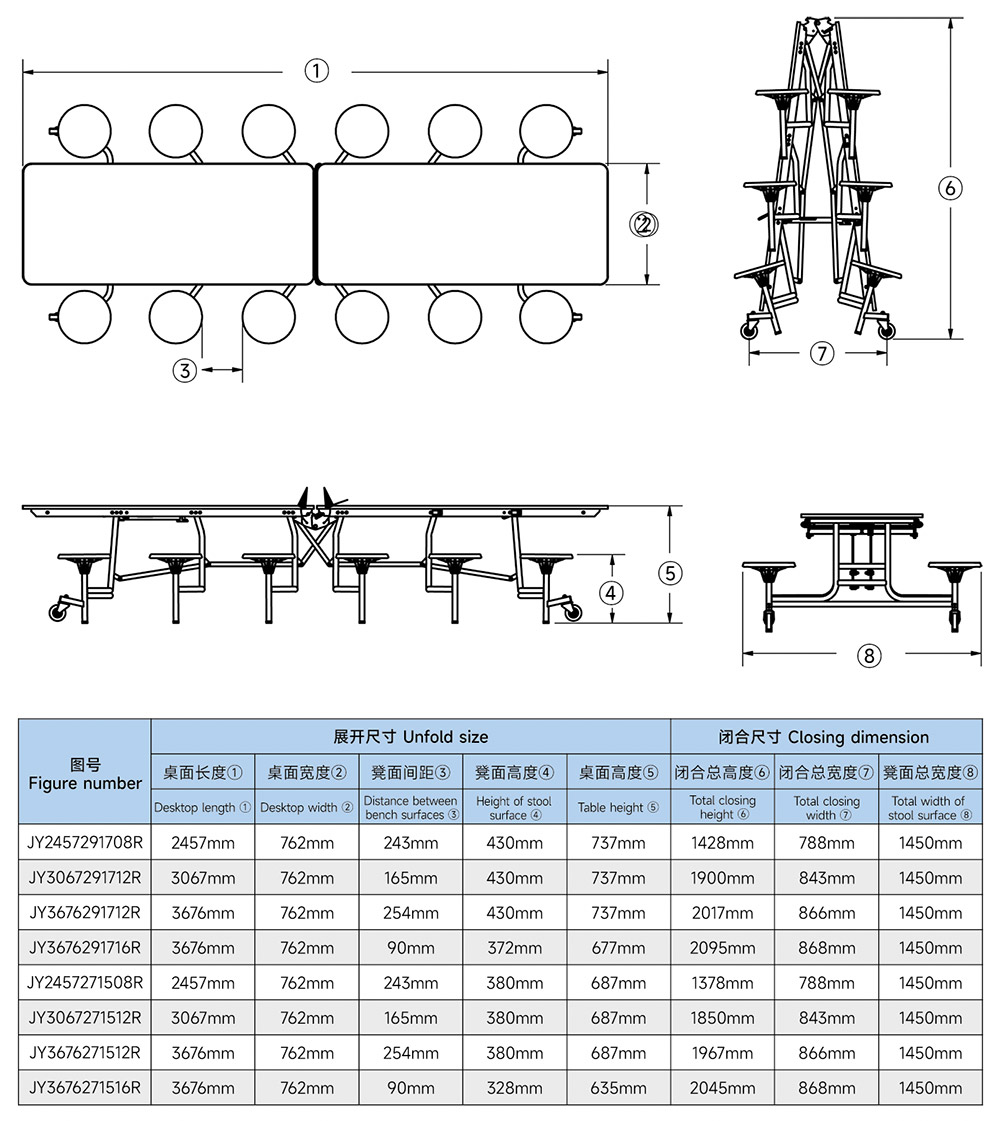 桌面 ●桌面材质:18mm或25mm厚度颗粒板、PU封边(防水、防污、耐摩擦) ●桌面颜色:木纹色或者单色 ●凳面材质:环保PP材料一次性注塑成型 ●凳面颜色:红色、黄色、蓝色、黑色等颜色 ●尺 寸 :高款(上图)矮款(高度整体降低50mm)
