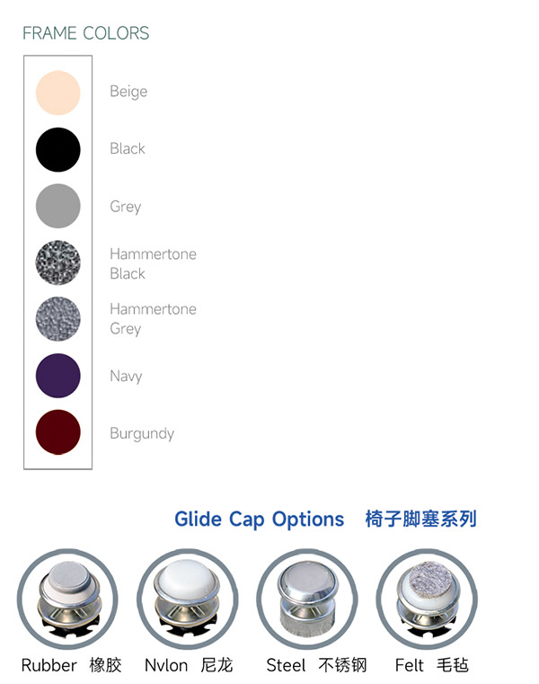 ● 椅子脚塞可以是尼龙,橡胶, 毛毡或者不锈钢底以适用于不同的教室地板